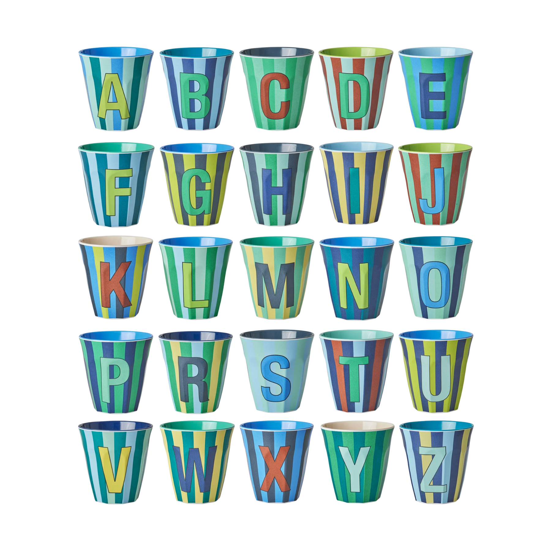 Melamine Full Alphabet - Stripes - 3 x Each Letter - Bluish Colors - Medium - 8.45 oz by RICE by RICE. Add a splash of color and fun to your daily routine.